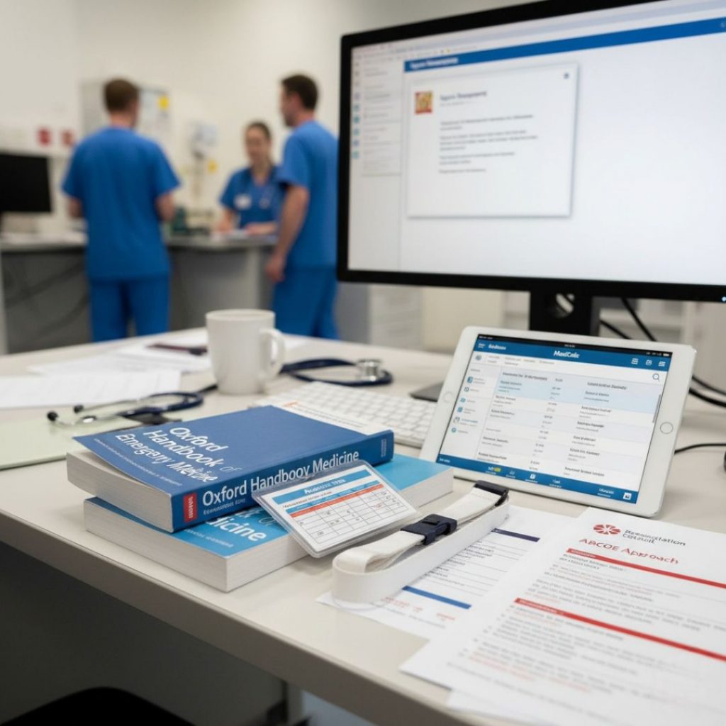 –Oxford Handbook of Emergency Medicine: for revision of common emergencies you are likely to see in the ED, including acute coronary syndrome, stroke, diabetic ketoacidosis, sepsis, and anaphylaxis.