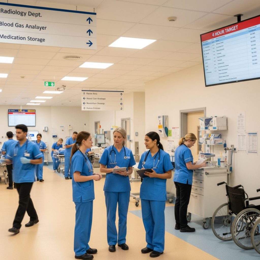 This includes knowing the sites of the following: radiology department, resus area, blood gas analysers, sluice rooms, wheelchairs, cannula/venepuncture kits, resus trolley, 12 lead ecg machines and medication storage. It is best to try to learn this in induction sessions. This will save you time and help to reduce stress levels whilst working in a busy department.